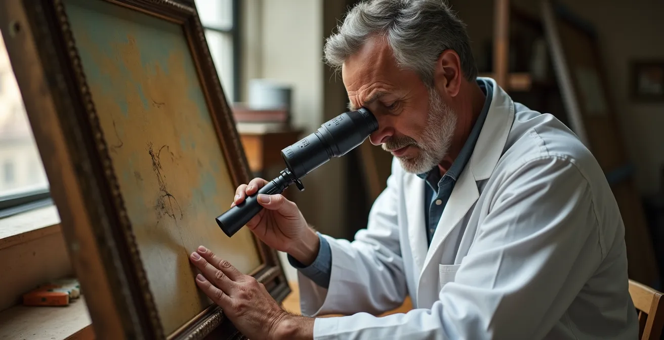 Der grösste Irrtum bei der Restaurierung ist die Annahme, das Ziel sei ein optisch perfektes Bild. In Wahrheit ist das oberste Gebot die Erhaltung der historischen Substanz. Jeder Eingriff, der nicht reversibel ist oder die originale Materie beschädigt, führt zu einer drastischen und unumkehrbaren Wertvernichtung. Ein potenzieller Käufer oder ein Auktionshaus investiert nicht in eine schöne Oberfläche, sondern in Authentizität und Provenienz. Eine unsachgemässe Restaurierung zerstört genau diese Qualitäten und kann ein wertvolles Werk in ein blosses Dekorationsobjekt verwandeln.